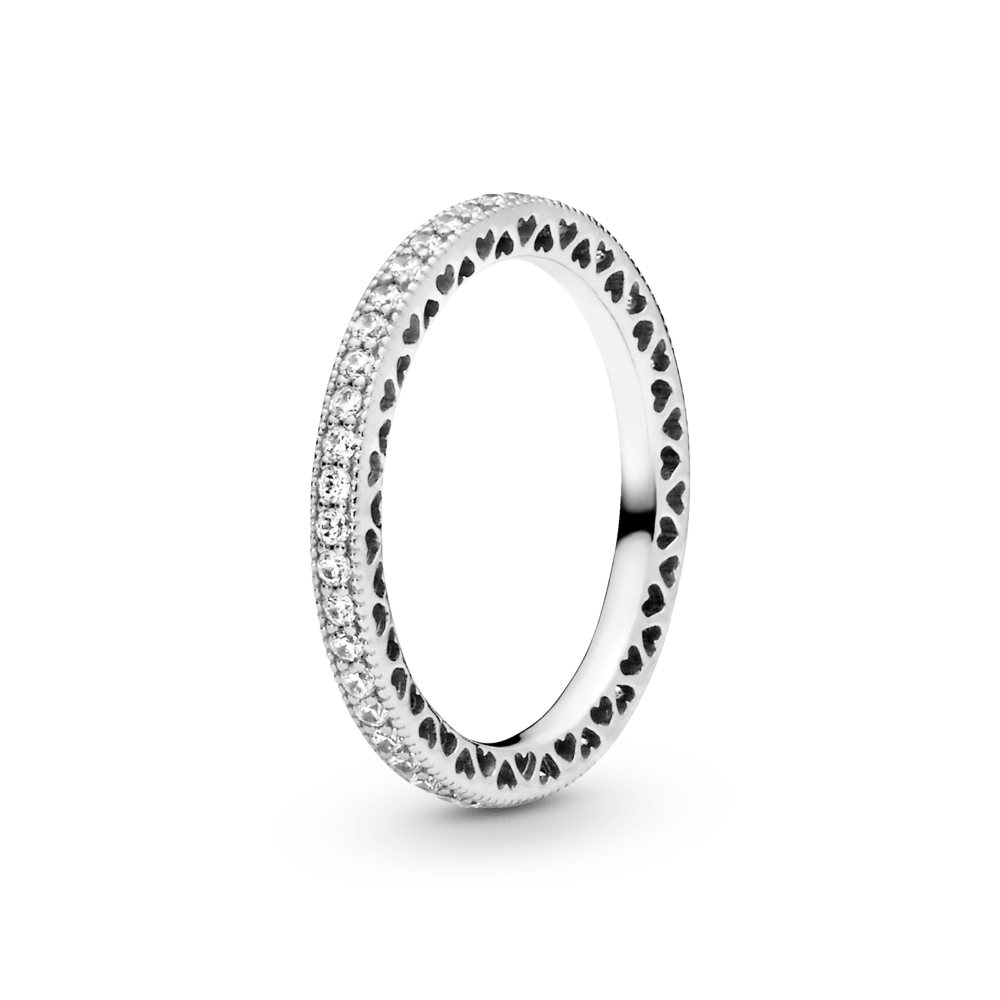 Expresse o verdadeiro desejo do seu coração com este Anel Brilhante. Uma joia de prata, finalizada à mão, que combina lindamente pedras de zircônias cúbicas elegantes com delicados corações recortados. Também pode ser usado como uma meia aliança. Exiba-o sozinho ou combine com outros anéis empilháveis.