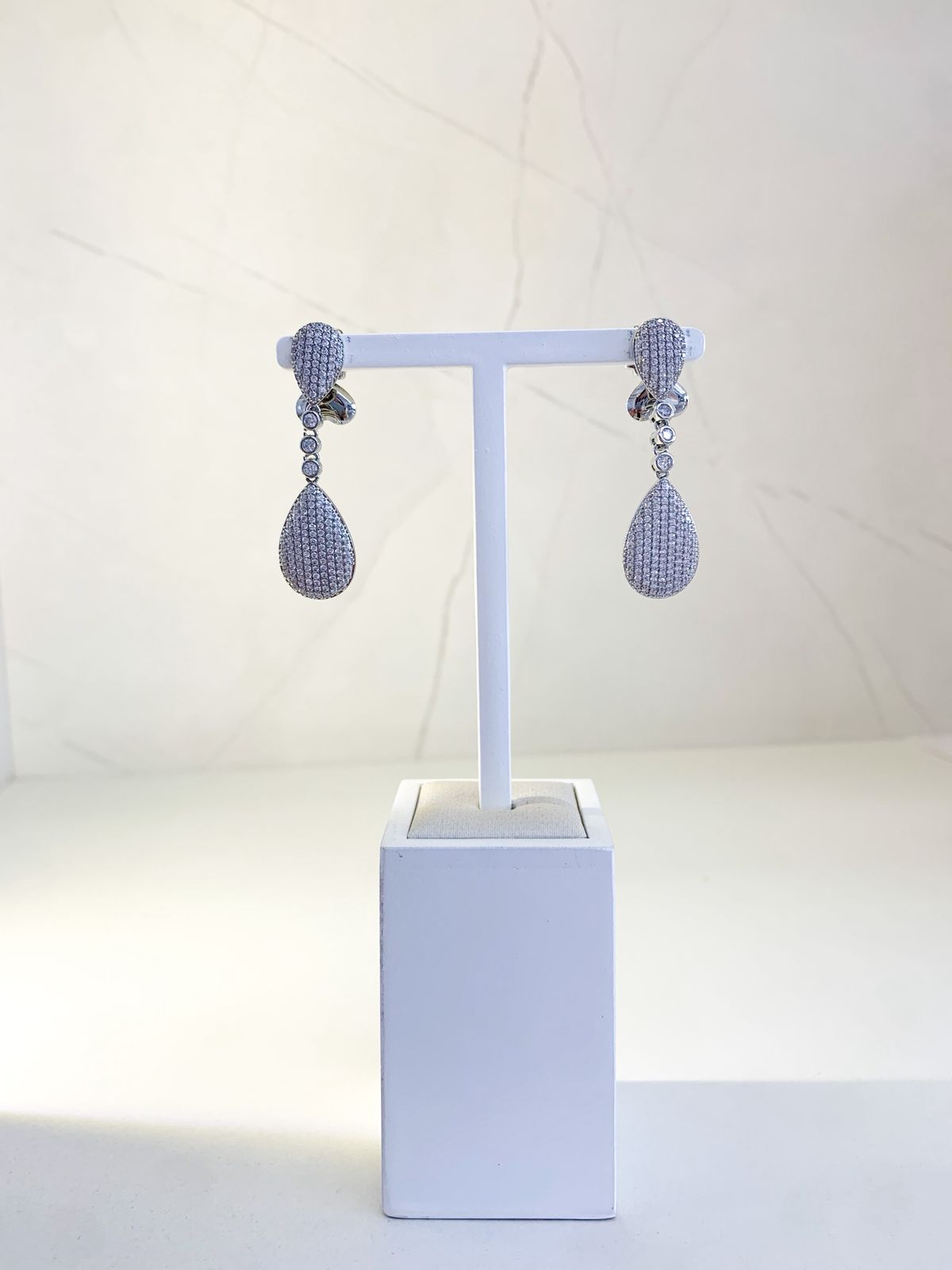 Brinco Adry possui zircônias cravejadas pratas. Com fechamento em tarraxas borboletas, banho de ródio e antialérgico. É uma opção confortável, podendo ser usada sozinha ou em composição com outros brincos Lulu.
