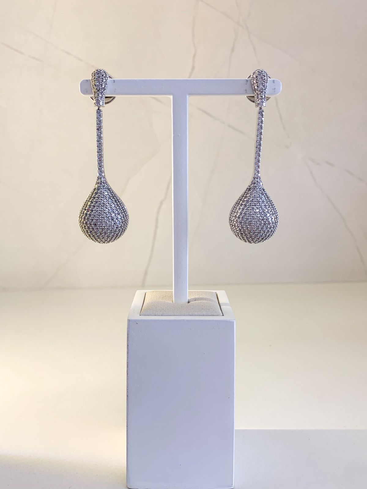 Brinco Helena possui zircônias cravejadas pratas. Com fechamento em tarraxas redondas, banho de prata e antialérgico.