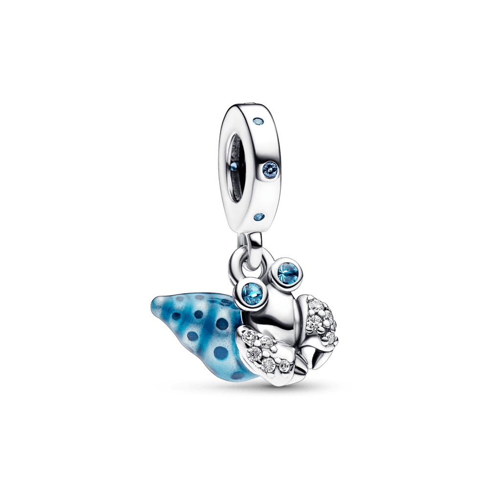 Nosso lar é um bem que carregamos conosco e o Caranguejo-Eremita sabe bem disso. O Charm Pendente Caranguejo Azul é produzido em prata de lei e ostenta uma concha em espiral com esmalte que brilha no escuro. Zircônias azuis e transparentes cintilam nos olhos, garras e corpo do crustáceo. Use este pingente como um símbolo do conforto e da segurança que só temos em casa!