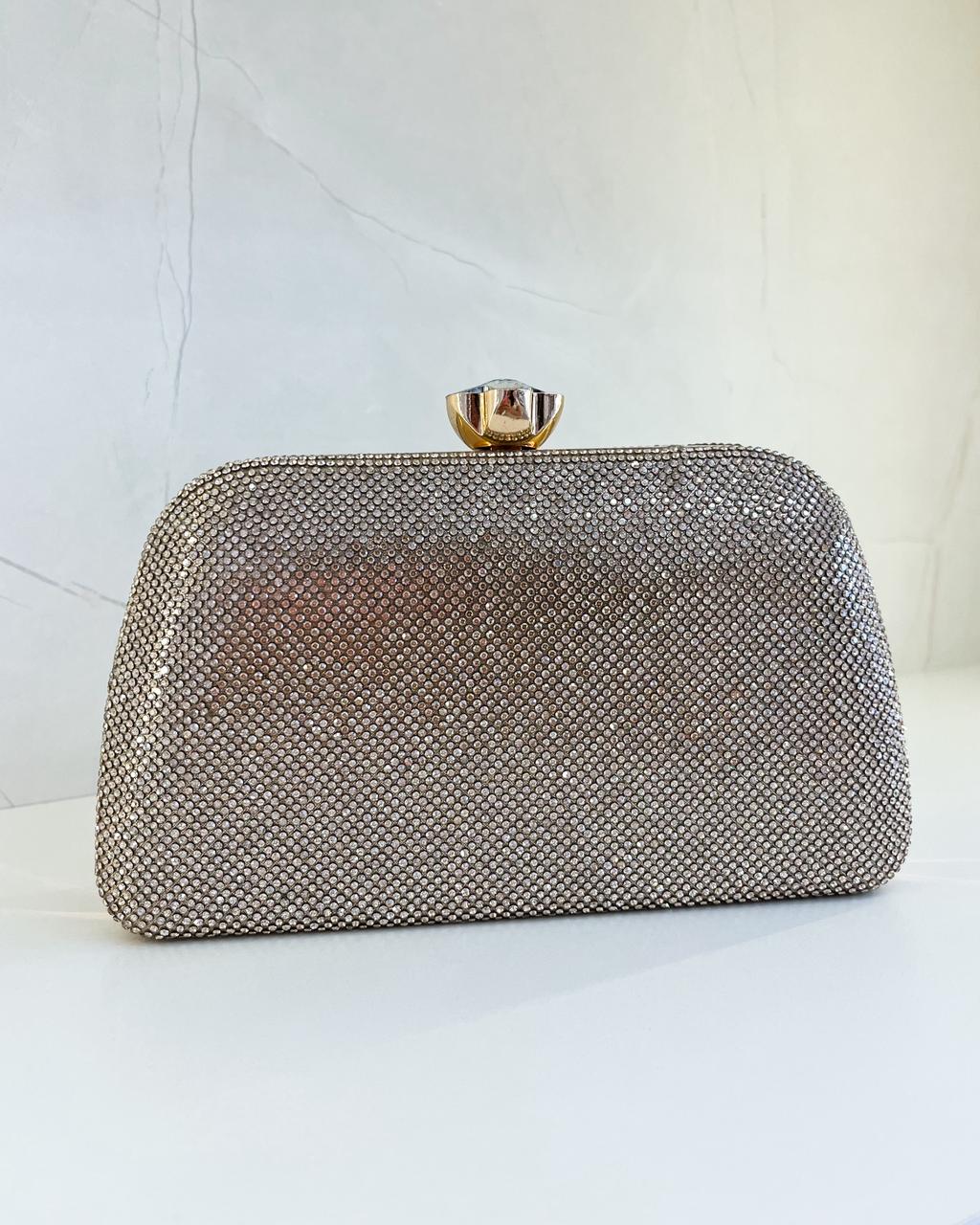 A Clutch Brilhos é perfeita para quem busca elegância e praticidade em festas e eventos. Disponibiliza dois modelos de alça: uma delicada corrente dourada e outra de com brilho, garantindo versatilidade no uso. O fechamento em formato de flor com pedra lapidada confere um toque diferenciado e sofisticado. Sua estrutura compacta é ideal para carregar itens essenciais sem abrir mão do estilo.