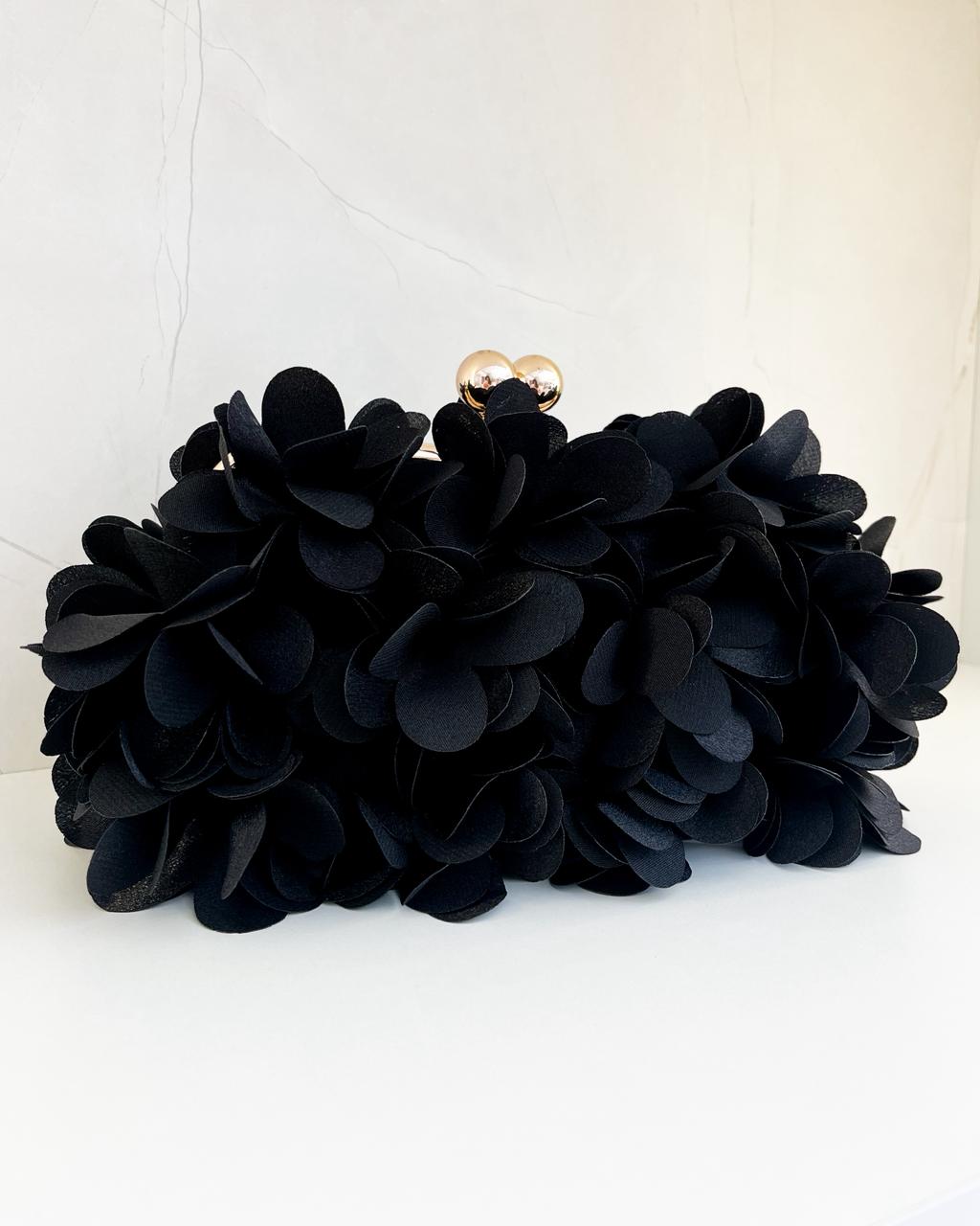 A Clutch Flores é perfeita para quem busca elegância e estilo na medida certa. Esta bolsa tem design exclusivo com aplicações de flores 3D em tecido preto, que conferem um visual sofisticado e delicado para ocasiões especiais. O acabamento inclui fecho metálico dourado que garante segurança com charme. Acompanha alça em correntaria removível, trazendo a possibilidade de você utilizar de duas formas: no outro ou como bolsa de mão.
